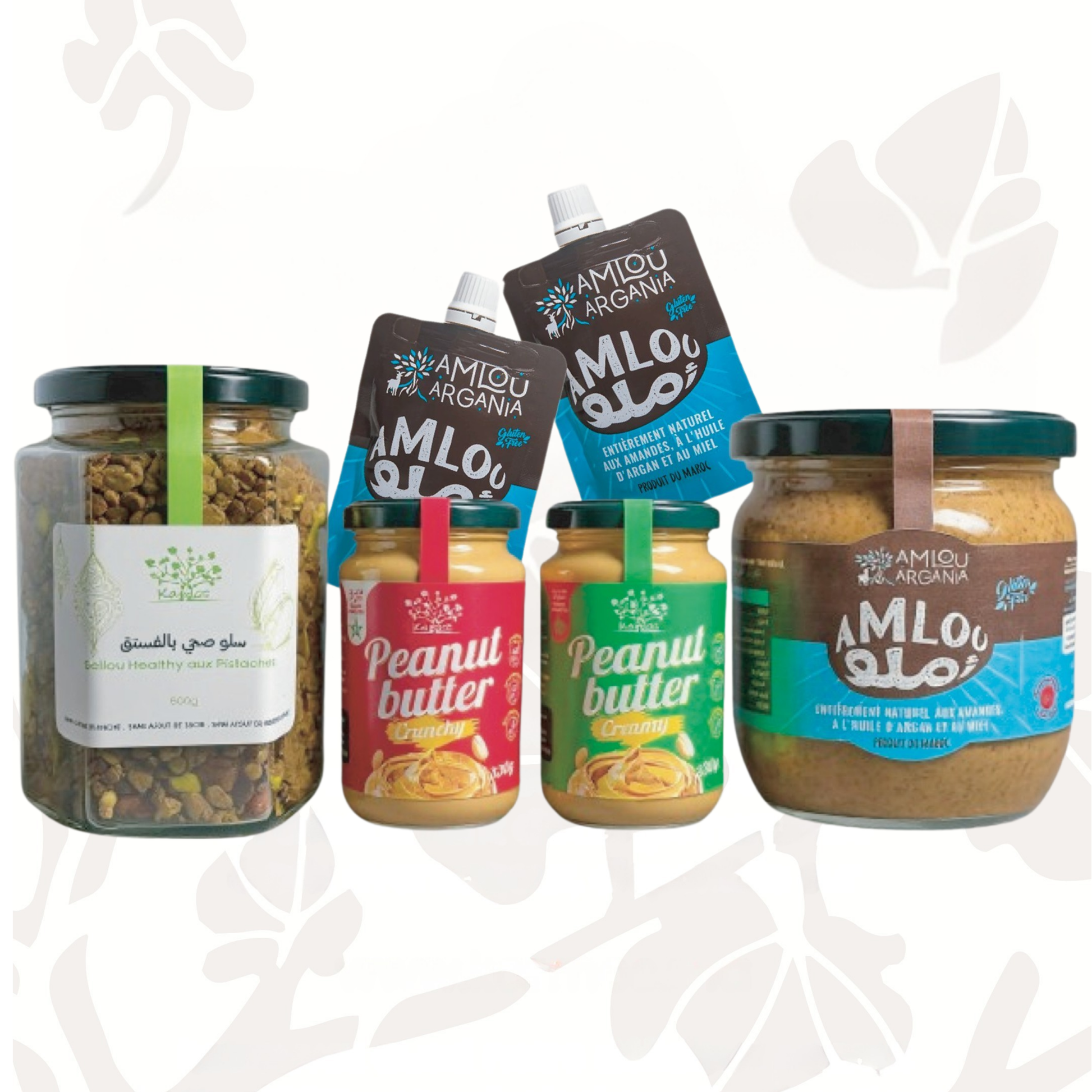 Laissez-vous tenter par le Pack Toudert : un assortiment d’énergie naturelle et de saveurs authentiques, composé de notre mélange healthy aux pistaches et amandes (600g), de nos Peanut Butter 100% naturels (2x330g crunchy & creamy), ainsi que de l’authentique Amlou Argania, présenté en pot généreux pour le plaisir de la famille (700g), et en sachets refermables (5 sachets), pratiques à glisser dans vos journées actives — pour savourer l’énergie du terroir où que vous soyez.